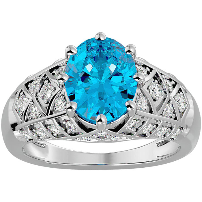 3 1/2 Carat Oval Shape Blue Topaz and Diamond Ring In 10 Karat White Gold