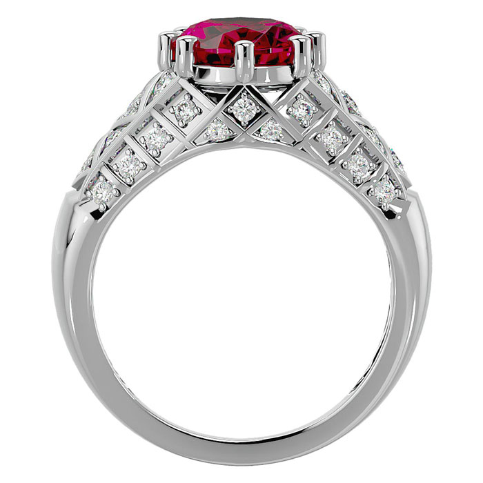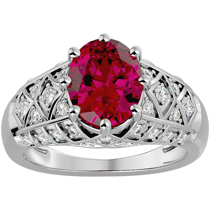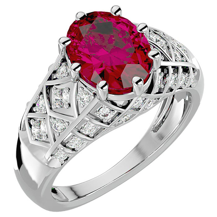 3 1/2 Carat Oval Shape Ruby and Diamond Ring In 10 Karat White Gold