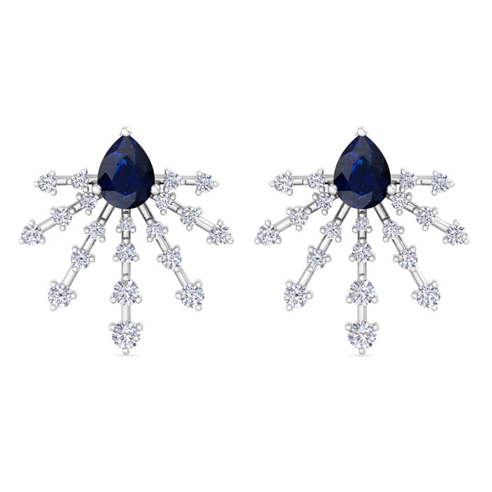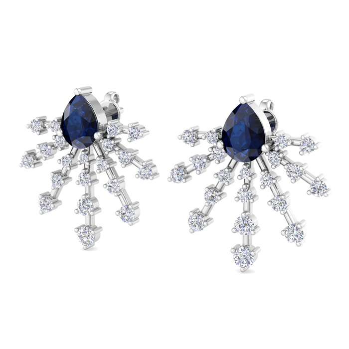 3 1/2 Carat Pear Shape Sapphire and Lab Grown Diamond Spray Drop Earrings In 14 Karat White Gold