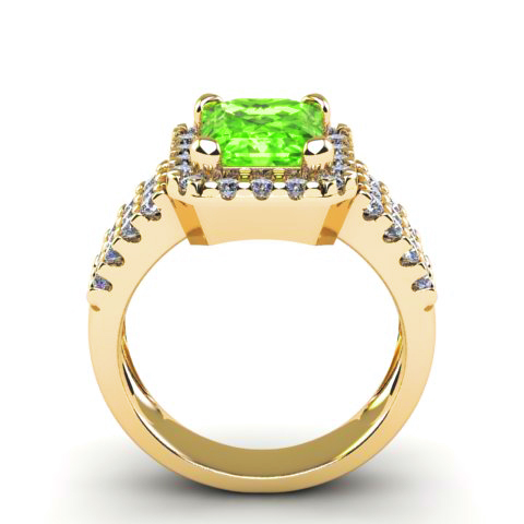 3 1/2 Carat Peridot and Halo Diamond Ring In 14 Karat Yellow Gold