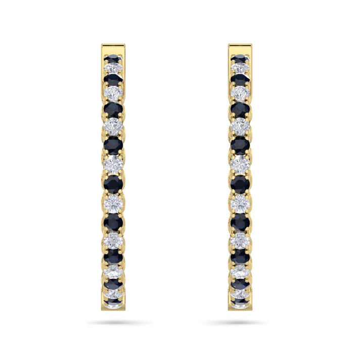 3 1/2 Carat Sapphire and Diamond Hoop Earrings In 14 Karat Yellow Gold, 1 Inch