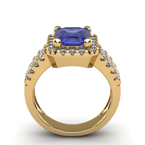 3 1/2 Carat Tanzanite and Halo Diamond Ring In 14 Karat Yellow Gold