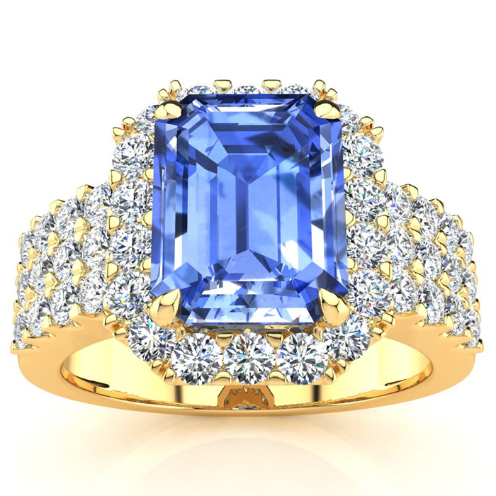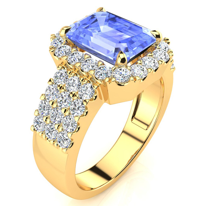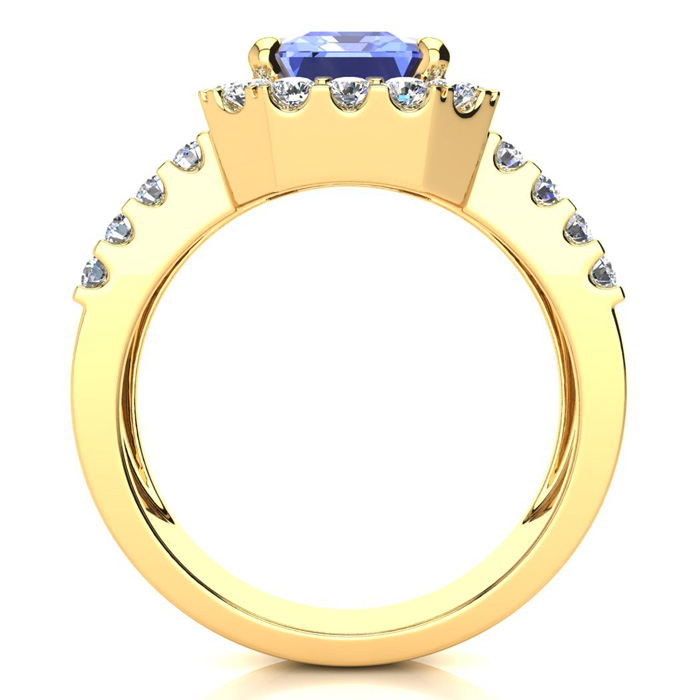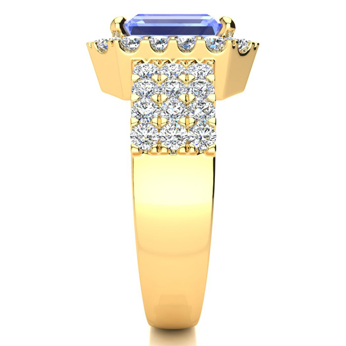 3 1/2 Carat Tanzanite and Halo Diamond Ring In 14 Karat Yellow Gold