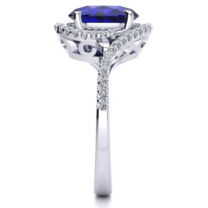 3 1/3 Carat Oval Shape Sapphire and Halo Diamond Ring In 18 Karat White Gold