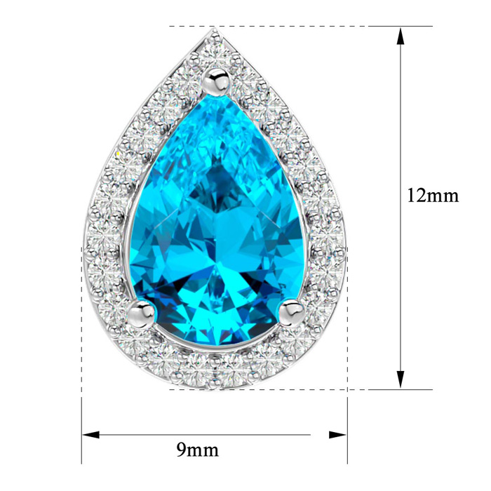 These elegant gemstone earrings feature two 9x6mm pear shape blue topaz gemstones at approximately 3 carats. They are surrounded by 48 sparkling diamonds in I-J color, I1-I2 clarity at 1/4 carat total weight. Total gem weight is approximately 3 1/4 carats. These earrings are in 14 karat white gold and have comfortable and secure friction backs. *Retrograde Birthstones™ flips the idea of traditional birthstones. Wear your ½ birthday birthstone, your Retrograde Birthstone, “The Birthstone For Your Bad Side™.
