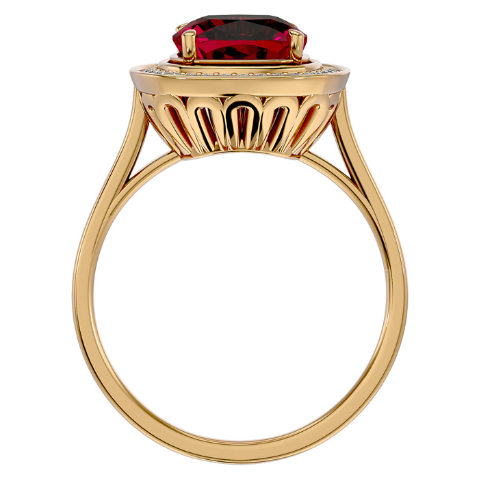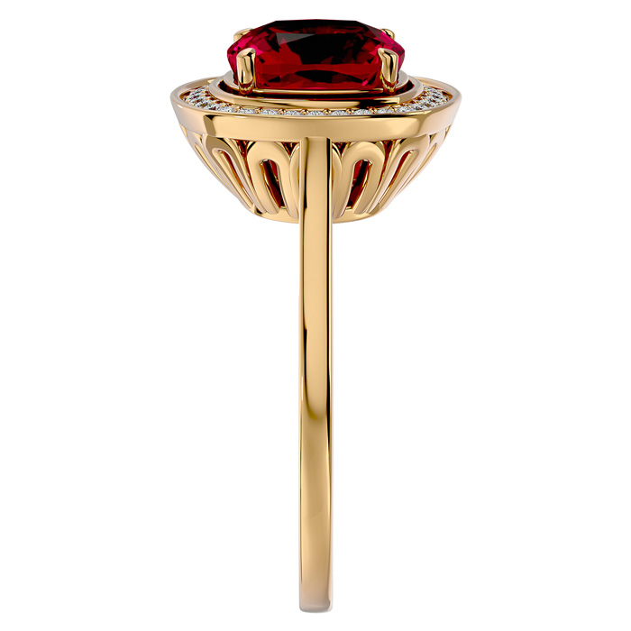 3 1/4 Carat Cushion Cut Ruby and Halo Diamond Ring In 14K Yellow Gold