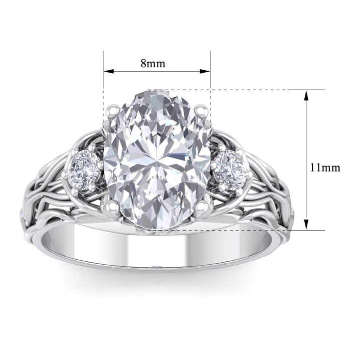 3 1/4 Carat Natural Oval Shape Diamond Intricate Vine Engagement Ring In 14 Karat White Gold