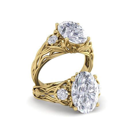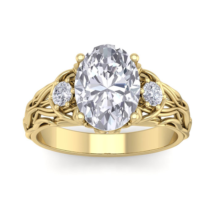 3 1/4 Carat Natural Oval Shape Diamond Intricate Vine Engagement Ring In 14 Karat Yellow Gold