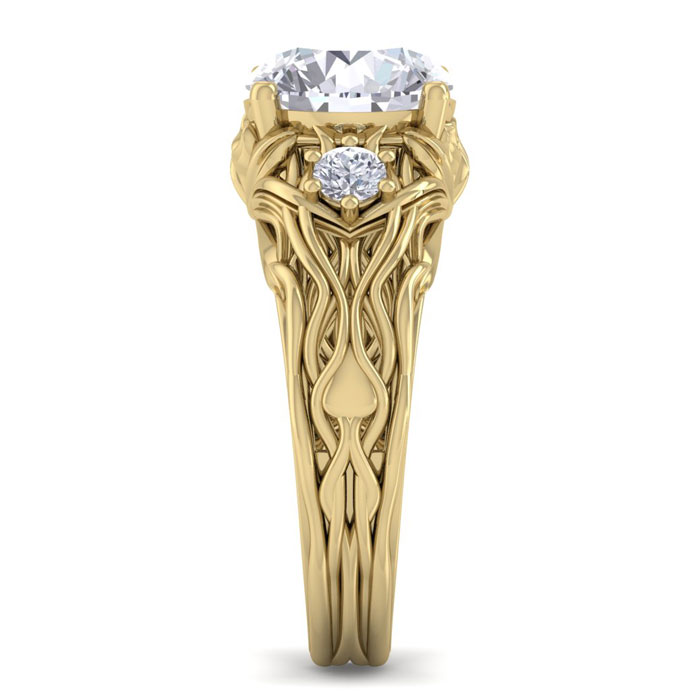 3 1/4 Carat Natural Round Shape Diamond Intricate Vine Engagement Ring In 14 Karat Yellow Gold