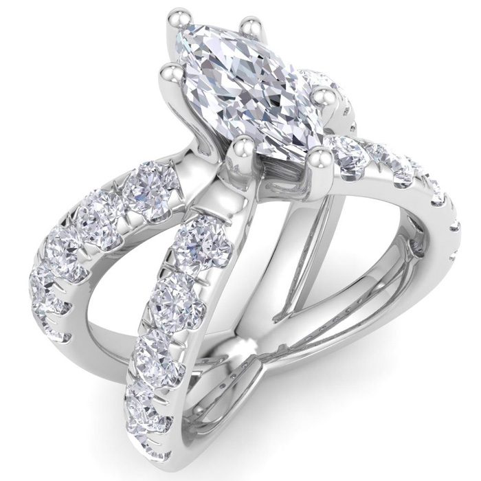 3 1/5 Carat Marquise Diamond Engagement Ring In 14K White Gold