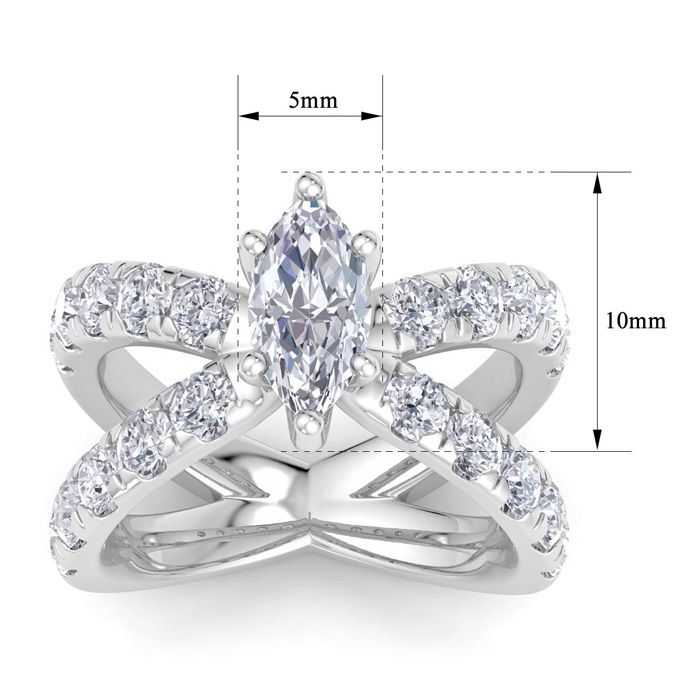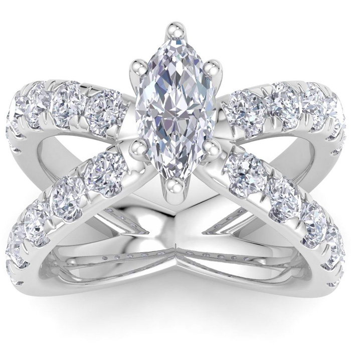 3 1/5 Carat Marquise Diamond Engagement Ring In 14K White Gold