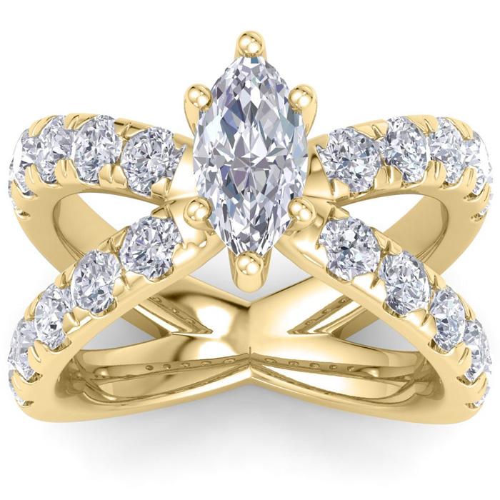 3 1/5 Carat Marquise Diamond Engagement Ring In 14K Yellow Gold