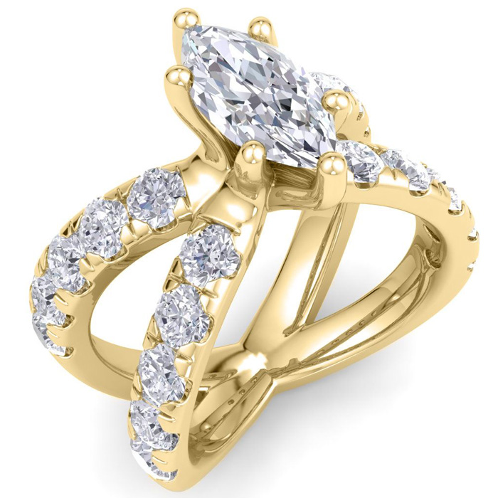 3 1/5 Carat Marquise Diamond Engagement Ring In 14K Yellow Gold