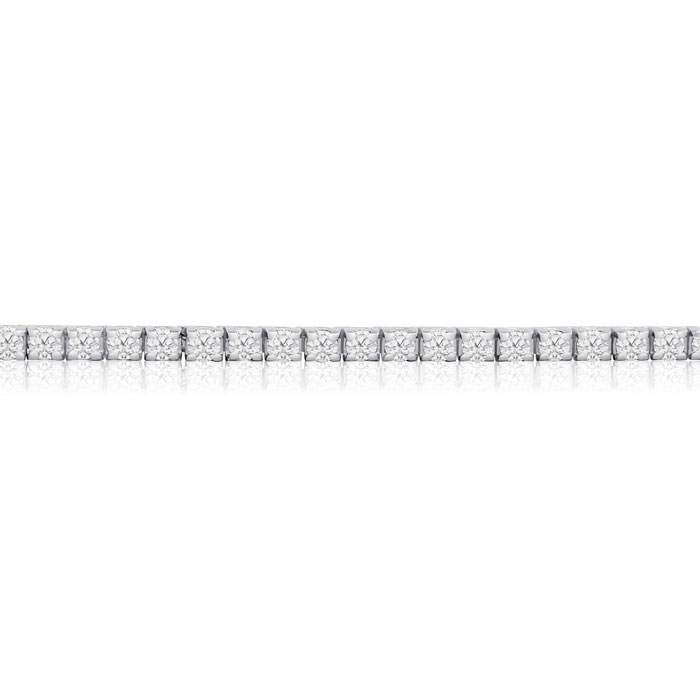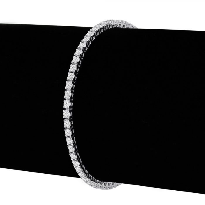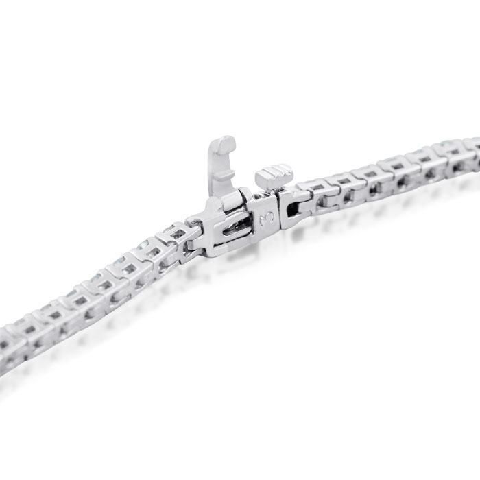 This 3 2/3 carat diamond mens tennis bracelet features approximately 81 round-cut natural diamonds to create a stunning, shimmering effect. The stones are set in solid 14 karat white gold. A secure, hidden-safety clasp keeps this piece fastened. Diamond color is J-K, diamond clarity is I2. Total carat weight varies by wrist length, but is approximately 3 carats.