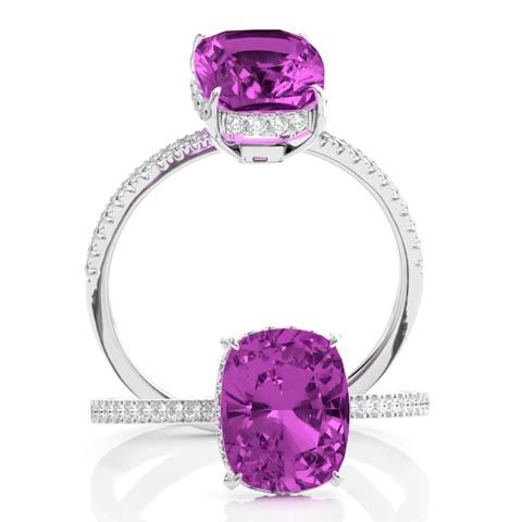 3 3/4 Carat Antique Cushion Shape Pink Topaz and Hidden Halo Diamond Ring In 14 Karat White Gold