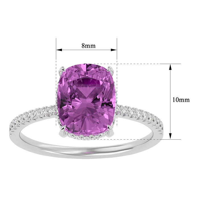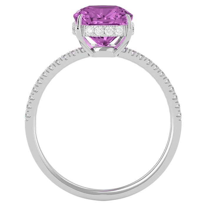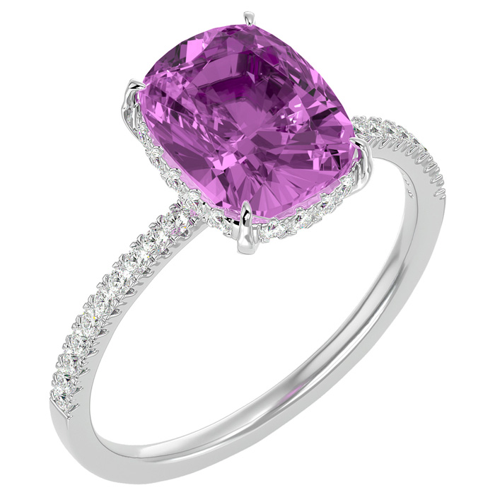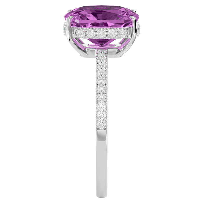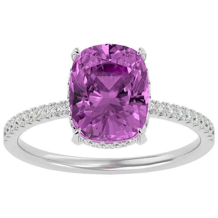 3 3/4 Carat Antique Cushion Shape Pink Topaz and Hidden Halo Diamond Ring In 14 Karat White Gold