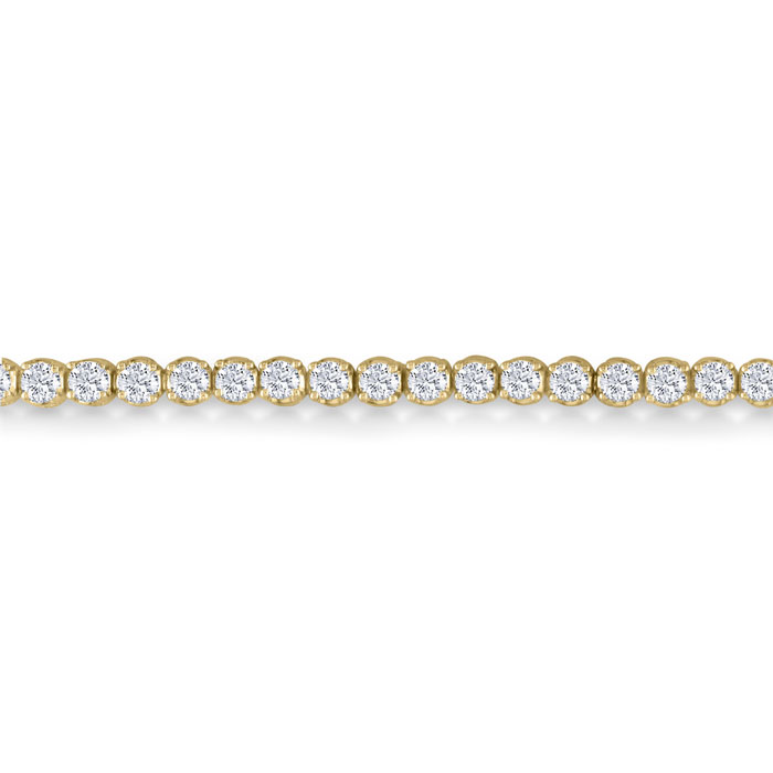 Beautiful new classic diamond mens tennis bracelet containing 3 3/4 carats of bright whitish diamonds, crafted in 14 karat Yellow gold. SuperJeweler's diamond mens tennis bracelets are made with the finest mountings, made to last a lifetime, completed with shimmering bright diamonds. Diamond color is I/J, diamond clarity is I1/I2.
