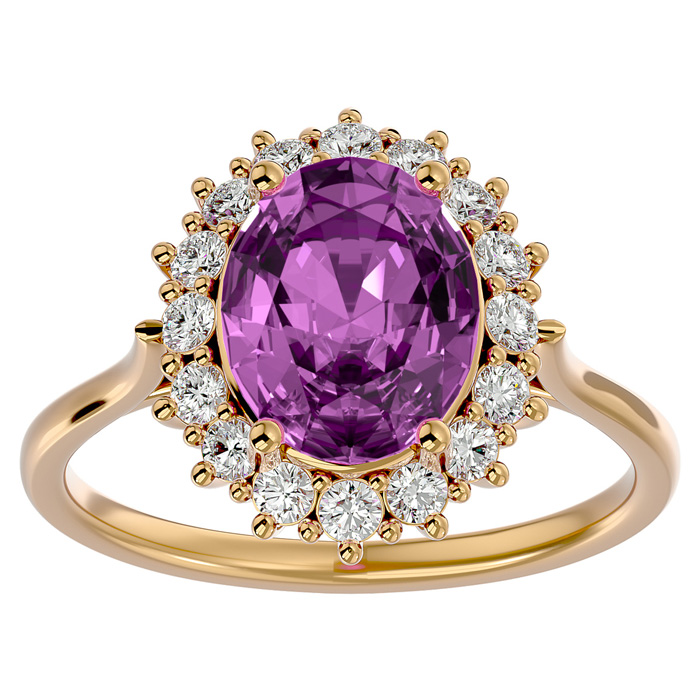 3 3/4 Carat Oval Shape Pink Topaz and Halo Diamond Ring In 14 Karat Yellow Gold