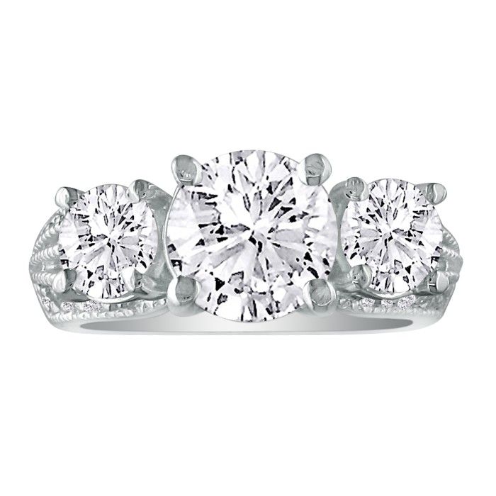 This ring is what dream engagement rings are made of! A brilliant 2ct center diamond is surrounded by 2 .875Ct diamonds and set in 14K white gold creating a definite showstopper. The diamonds areH-I color & SI2-I1 clarity.