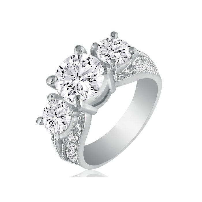 3 3/4 Carat Natural Three Diamond Ring in 14k White Gold