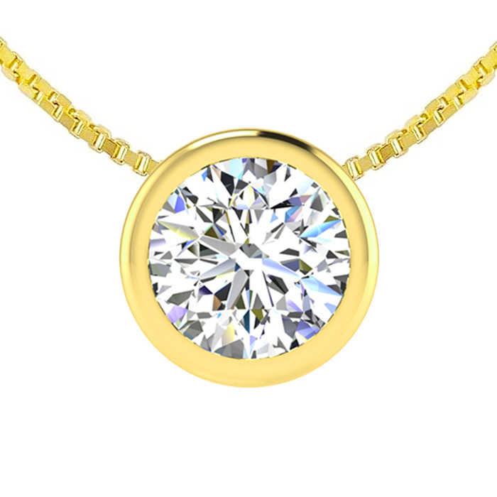 3/4 Carat Natural Bezel Set Diamond Solitaire Necklace in 14K Yellow Gold, 18 Inches