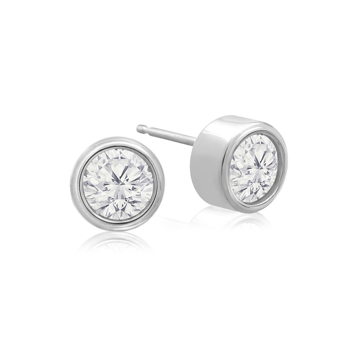 3/4 Carat Natural Bezel Set Diamond Stud Earrings Crafted In 14 Karat White Gold