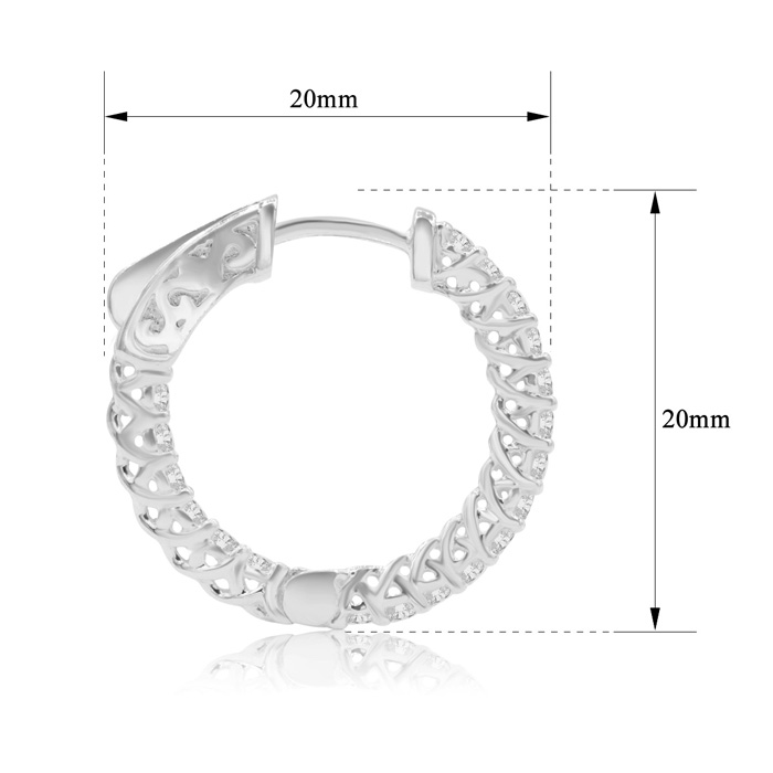 These classic hoop earrings feature 38 sparkling cubic zirconia stones that have the look of a pair of 3/4 carat diamond hoop earrings. These earrings are 3/4 inch in diameter and have secure post with snap lock backs. These earrings are in sterling silver.