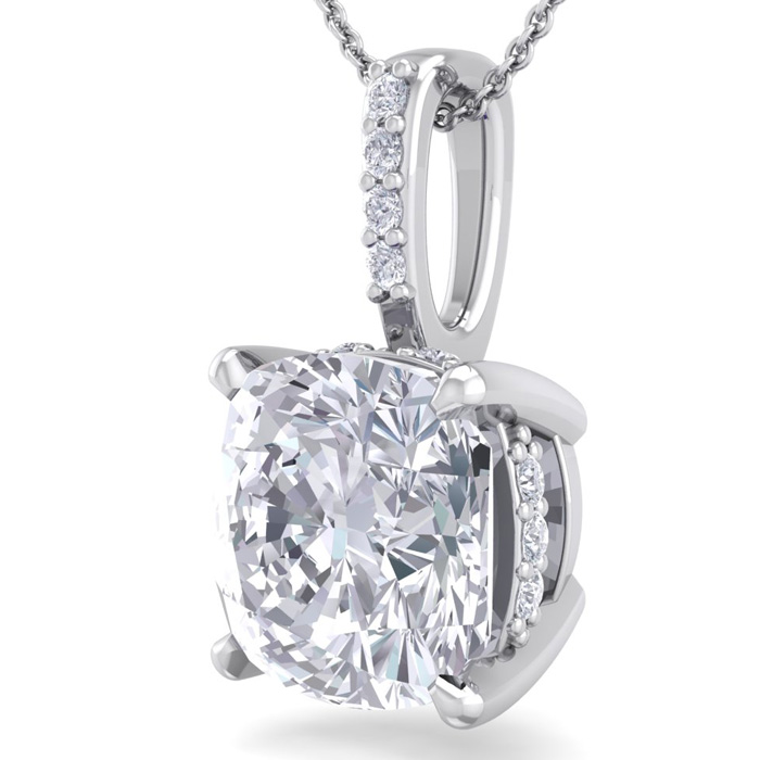 3/4 Carat Natural Cushion Cut Hidden Halo Diamond Necklace In 14 Karat White Gold, 18 Inches