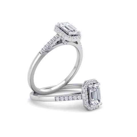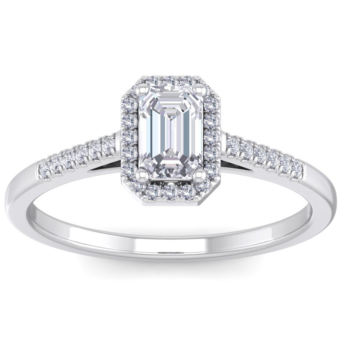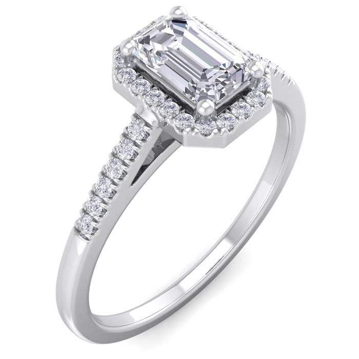 3/4 Carat Natural Emerald Cut Halo Diamond Engagement Ring In 14K White Gold