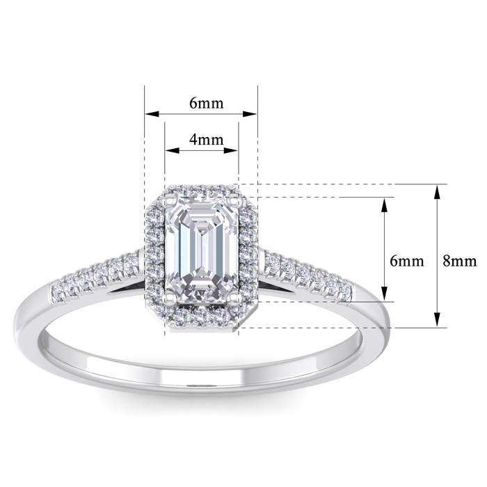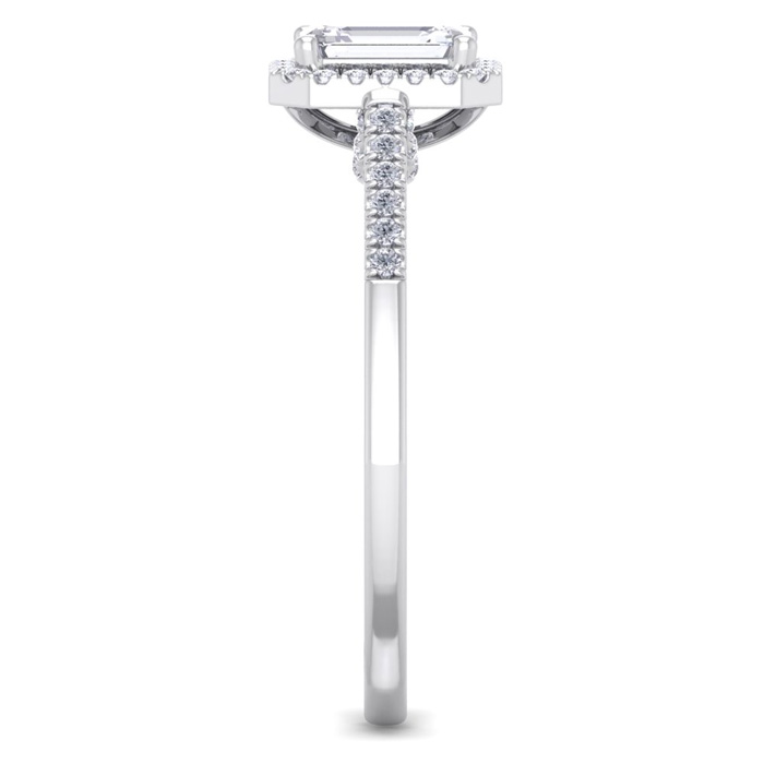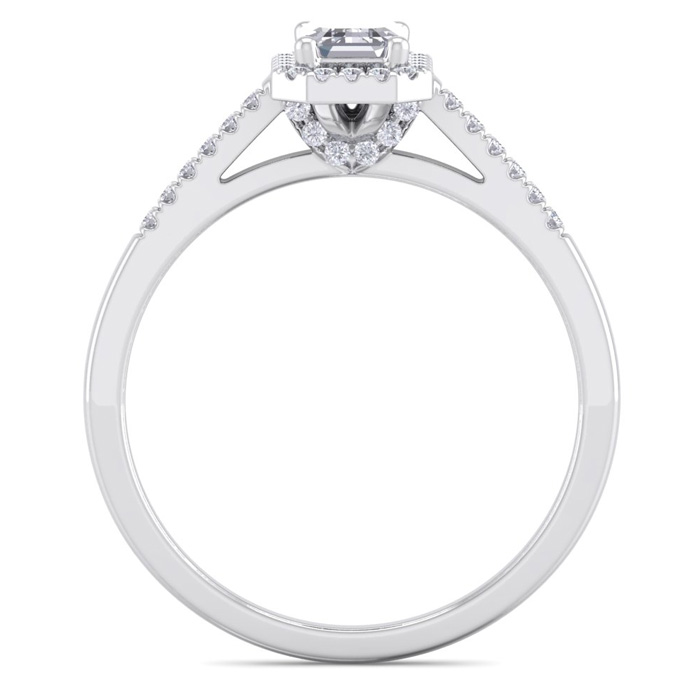 3/4 Carat Natural Emerald Cut Halo Diamond Engagement Ring In 14K White Gold