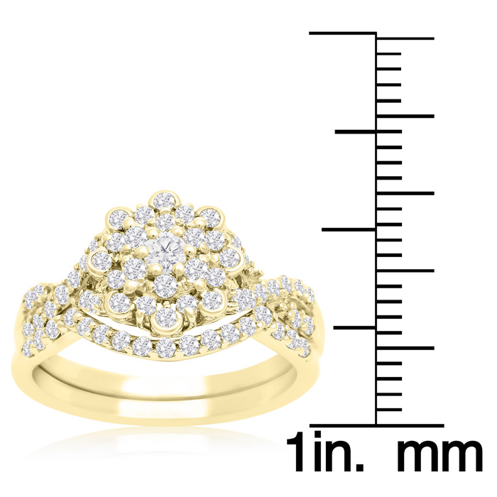 3/4 Carat Natural Floral Halo Diamond Bridal Set in 14 Karat Yellow Gold