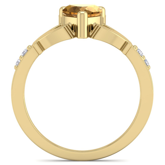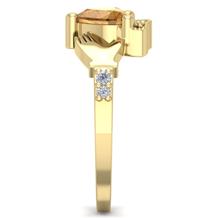 3/4 Carat Heart Shape Citrine and Diamond Claddagh Ring In 14 Karat Yellow Gold