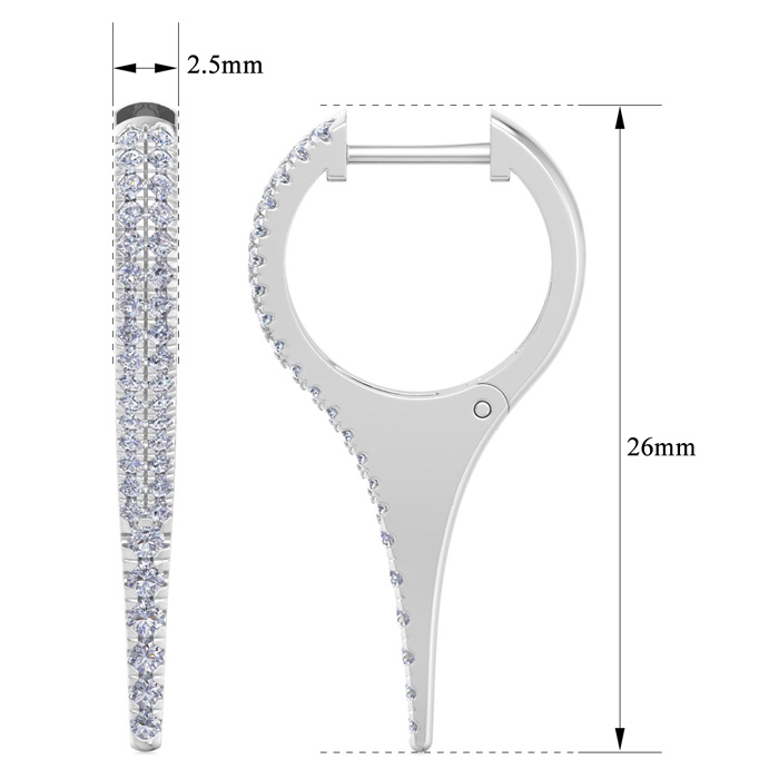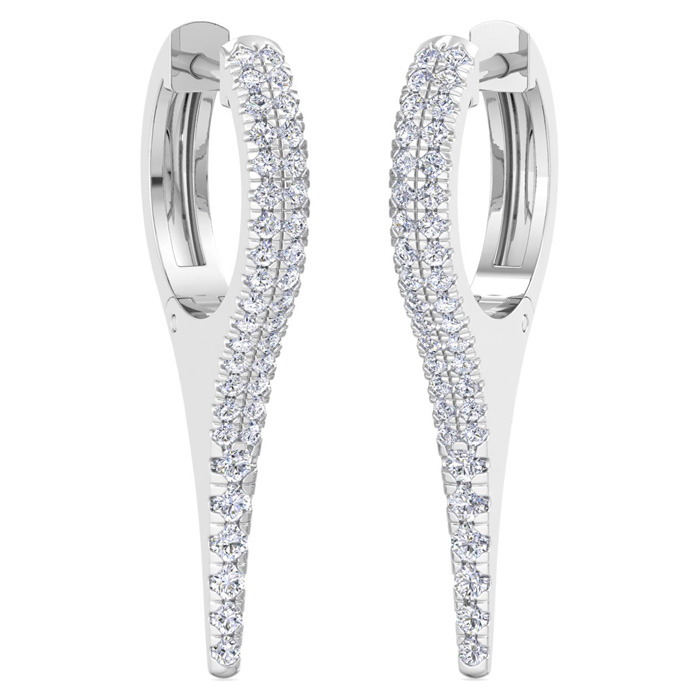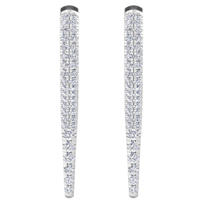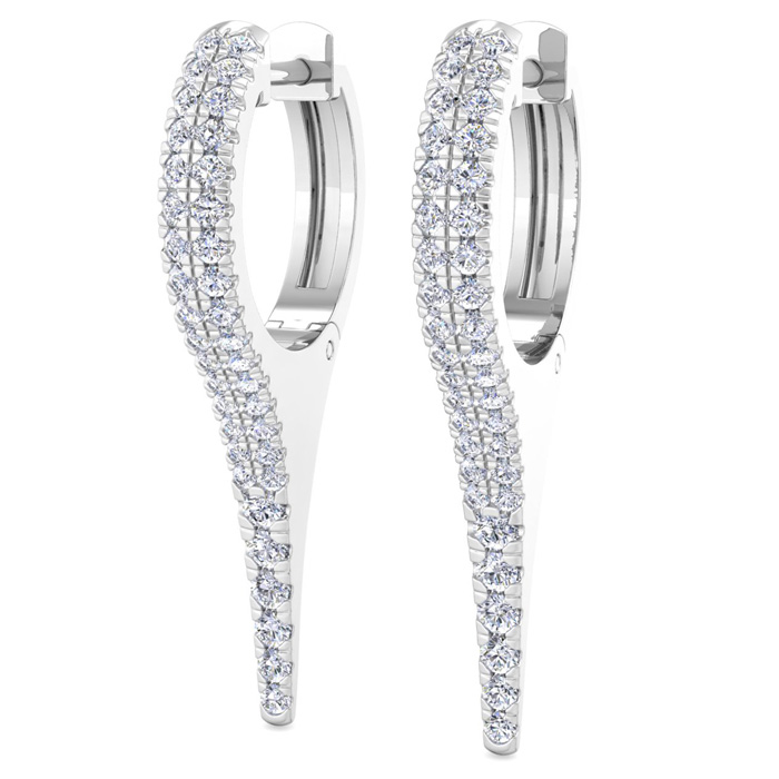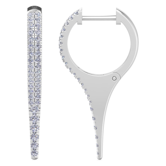 3/4 Carat Lab Grown Diamond Hoop Drop Earrings In 14 Karat White Gold, 1 Inch