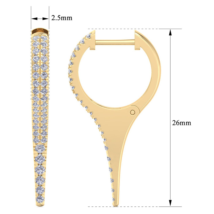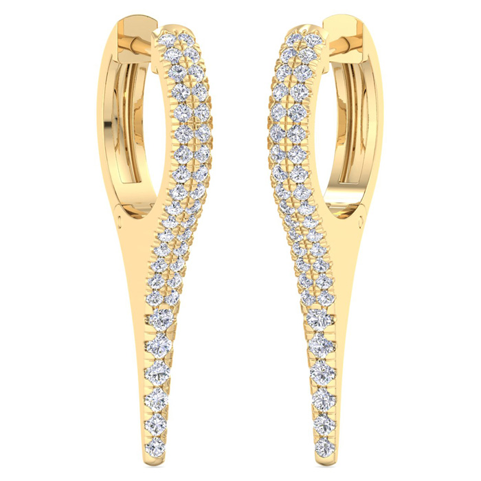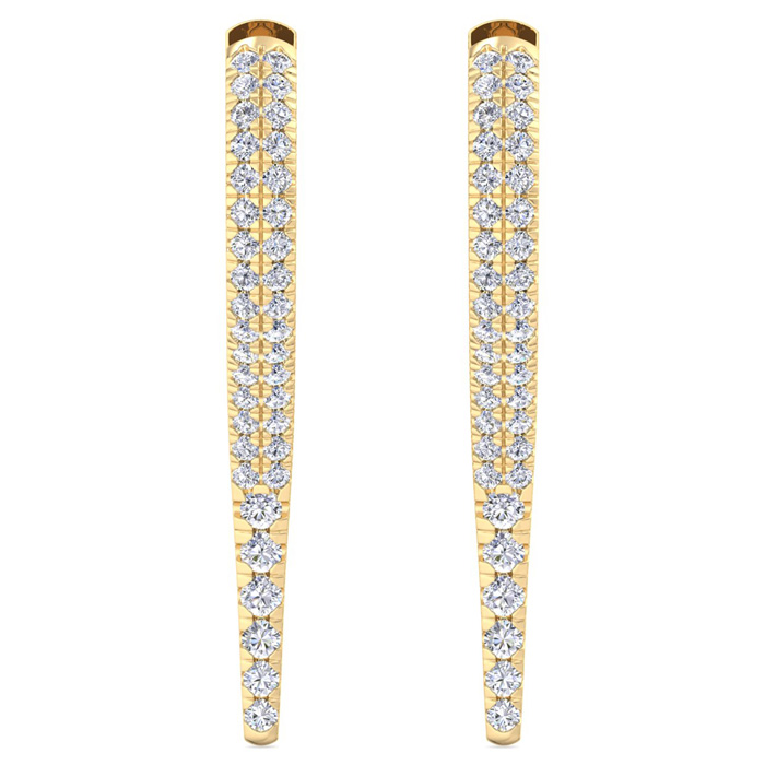 3/4 Carat Lab Grown Diamond Hoop Drop Earrings In 14 Karat Yellow Gold, 1 Inch