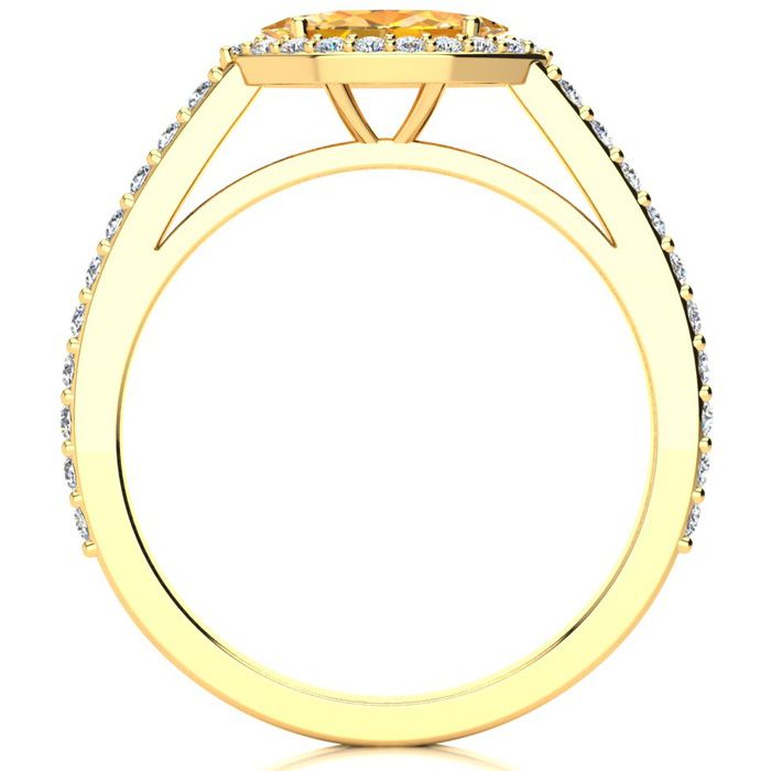 Retrograde Birthstones™ 3/4 Carat Marquise Shape Citrine and Halo Diamond Ring In 14 Karat Yellow Gold