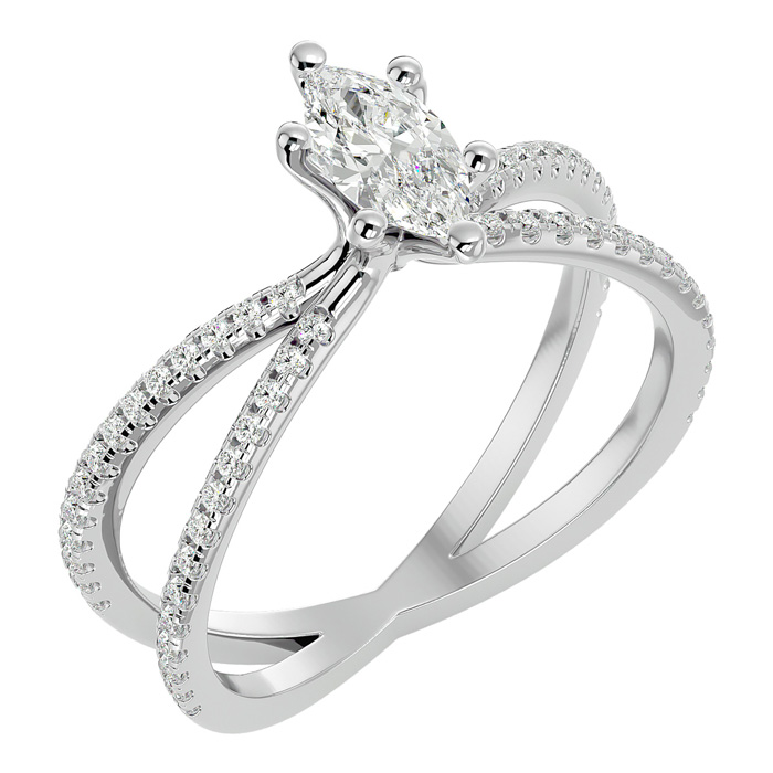 3/4 Carat Marquise Shape Diamond Engagement Ring In 14 Karat White Gold