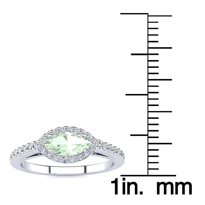Retrograde Birthstones™ 3/4 Carat Marquise Shape Green Amethyst and Halo Diamond Ring In 14 Karat White Gold