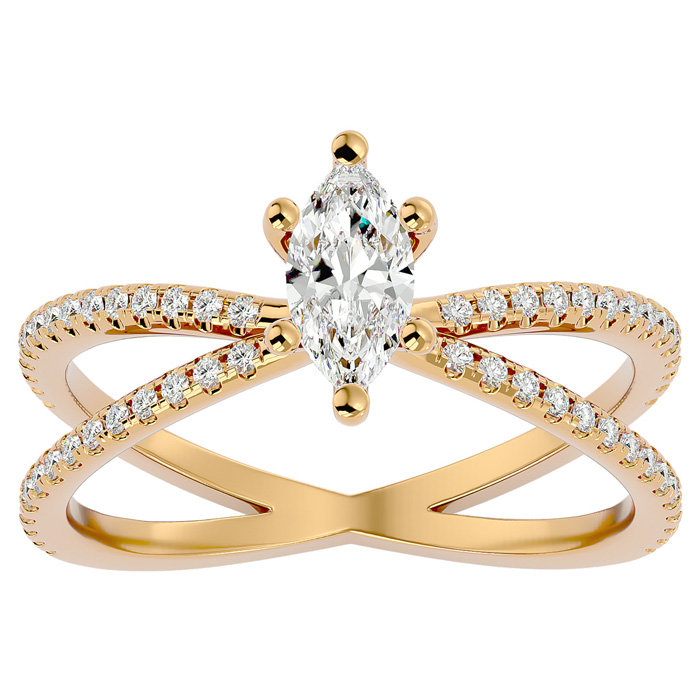 3/4 Carat Marquise Shape Lab Grown Diamond Engagement Ring In 14 Karat Yellow Gold