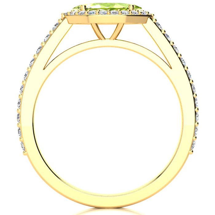 3/4 Carat Marquise Shape Peridot and Halo Diamond Ring In 14 Karat Yellow Gold
