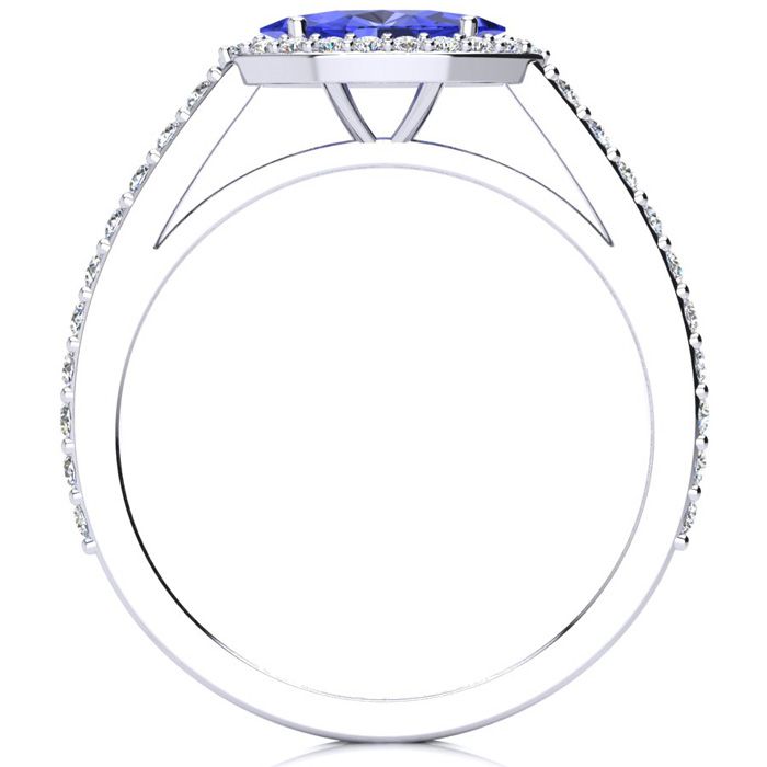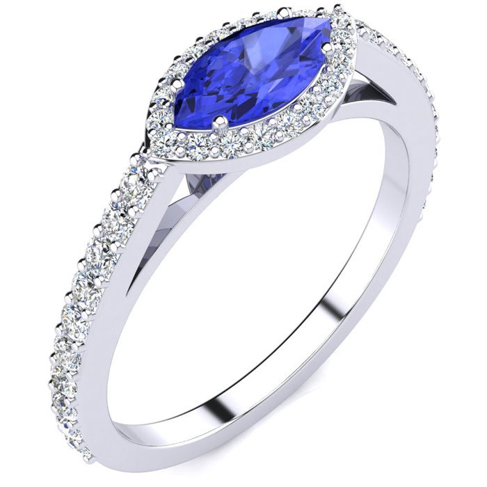 3/4 Carat Marquise Shape Tanzanite and Halo Diamond Ring In 14 Karat White Gold