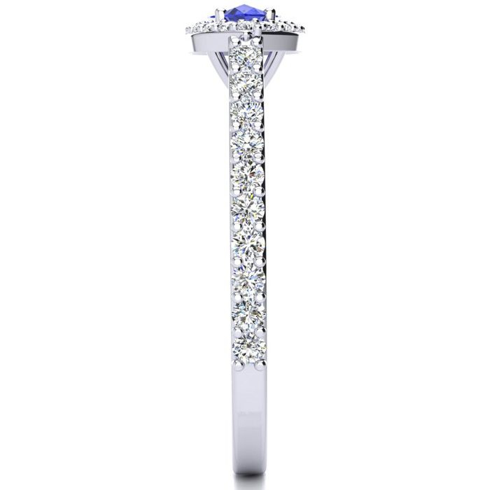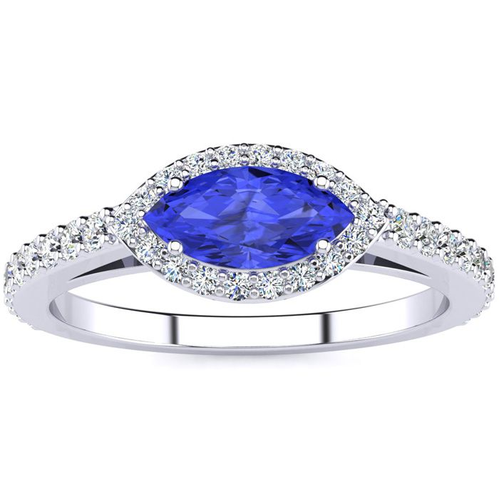 Retrograde Birthstones™ 3/4 Carat Marquise Shape Tanzanite and Halo Diamond Ring In 14 Karat White Gold