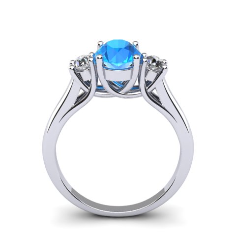 3/4 Carat Oval Shape Blue Topaz and Two Diamond Ring In 14 Karat White Gold