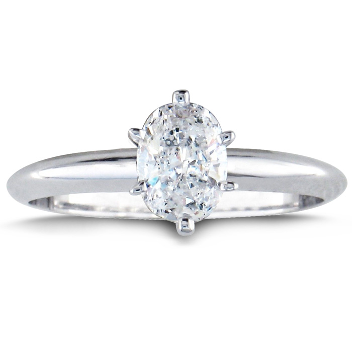 3/4 Carat Natural Oval Shape Diamond Solitaire Ring In 14K White Gold