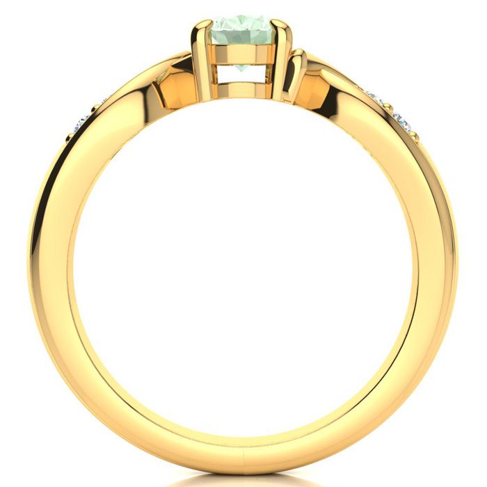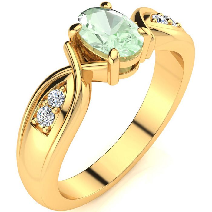 3/4 Carat Oval Shape Green Amethyst and Four Diamond Ring In 10 Karat Yellow Gold