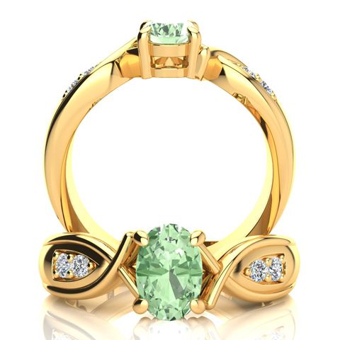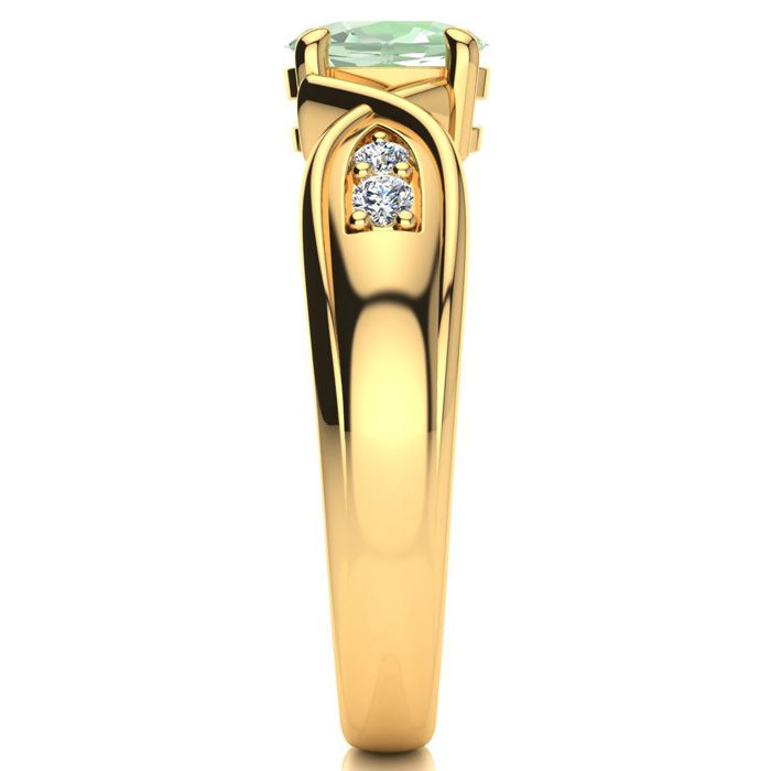 3/4 Carat Oval Shape Green Amethyst and Four Diamond Ring In 10 Karat Yellow Gold