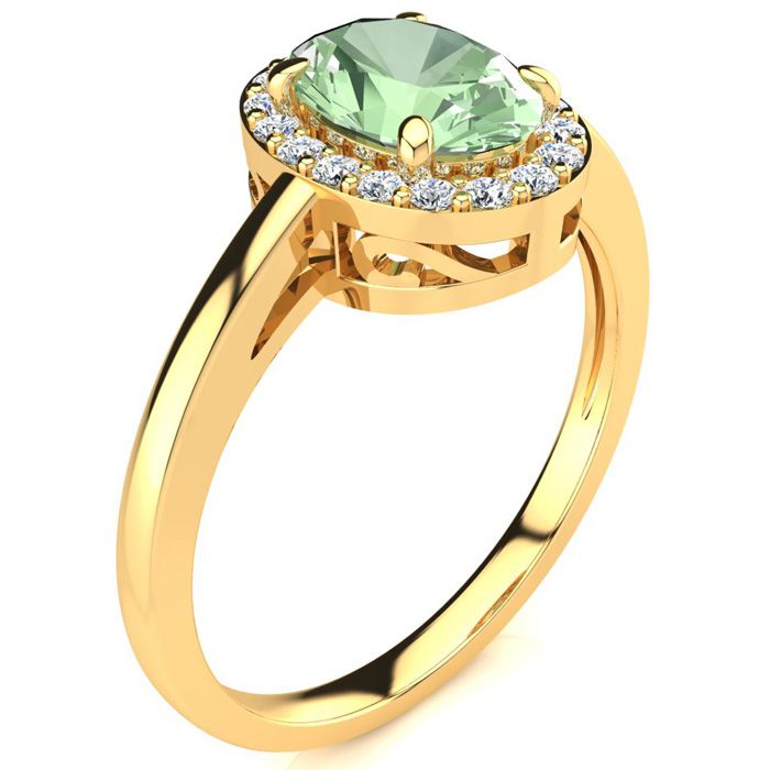 3/4 Carat Oval Shape Green Amethyst and Halo Diamond Ring In 14K Yellow Gold