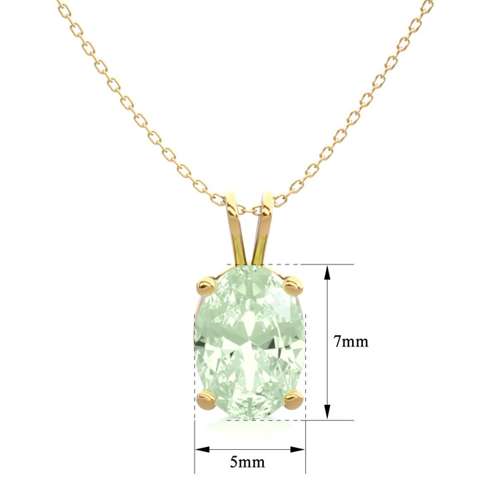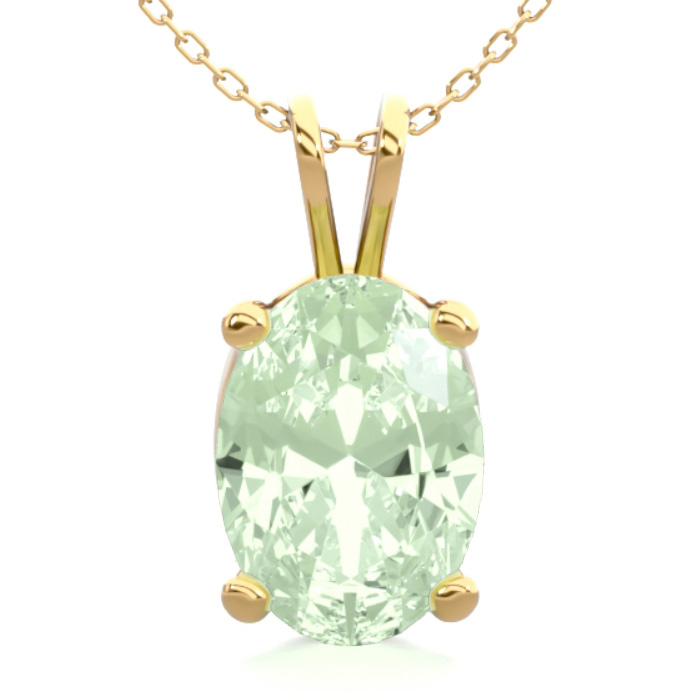 3/4 Carat Oval Shape Green Amethyst Necklace In 14K Yellow Gold Over Sterling Silver, 18 Inches