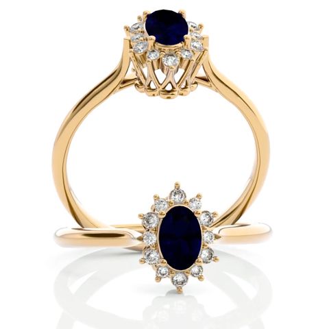 3/4 Carat Oval Shape Sapphire and Halo Diamond Ring In 14 Karat Yellow Gold