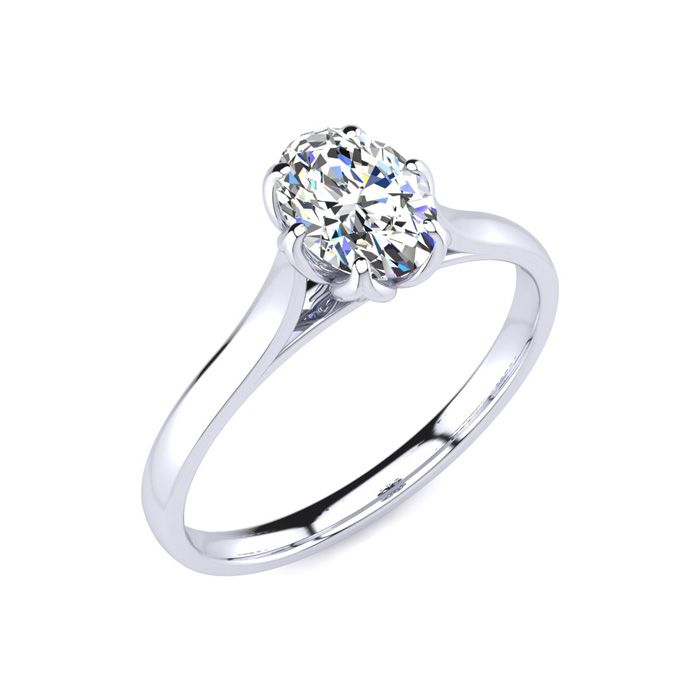 3/4 Carat Natural Oval Shape Solitaire Engagement Ring In 14 Karat White Gold