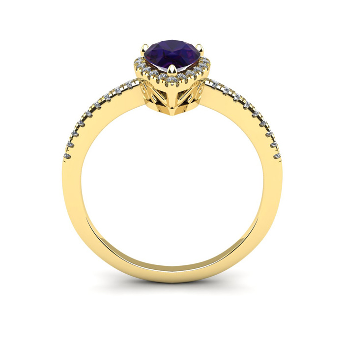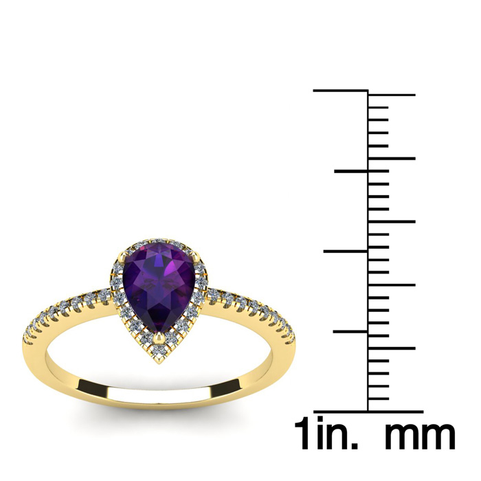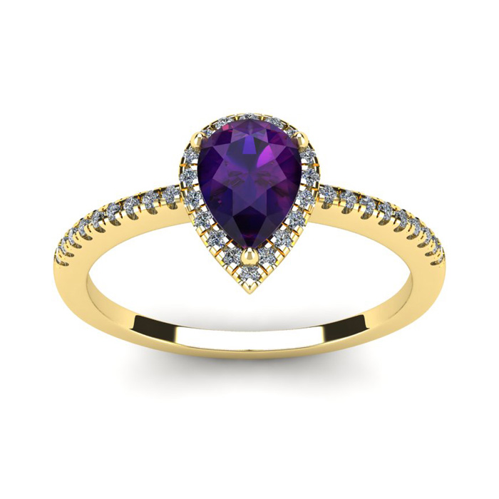3/4 Carat Pear Shape Amethyst and Halo Diamond Ring In 14 Karat Yellow Gold